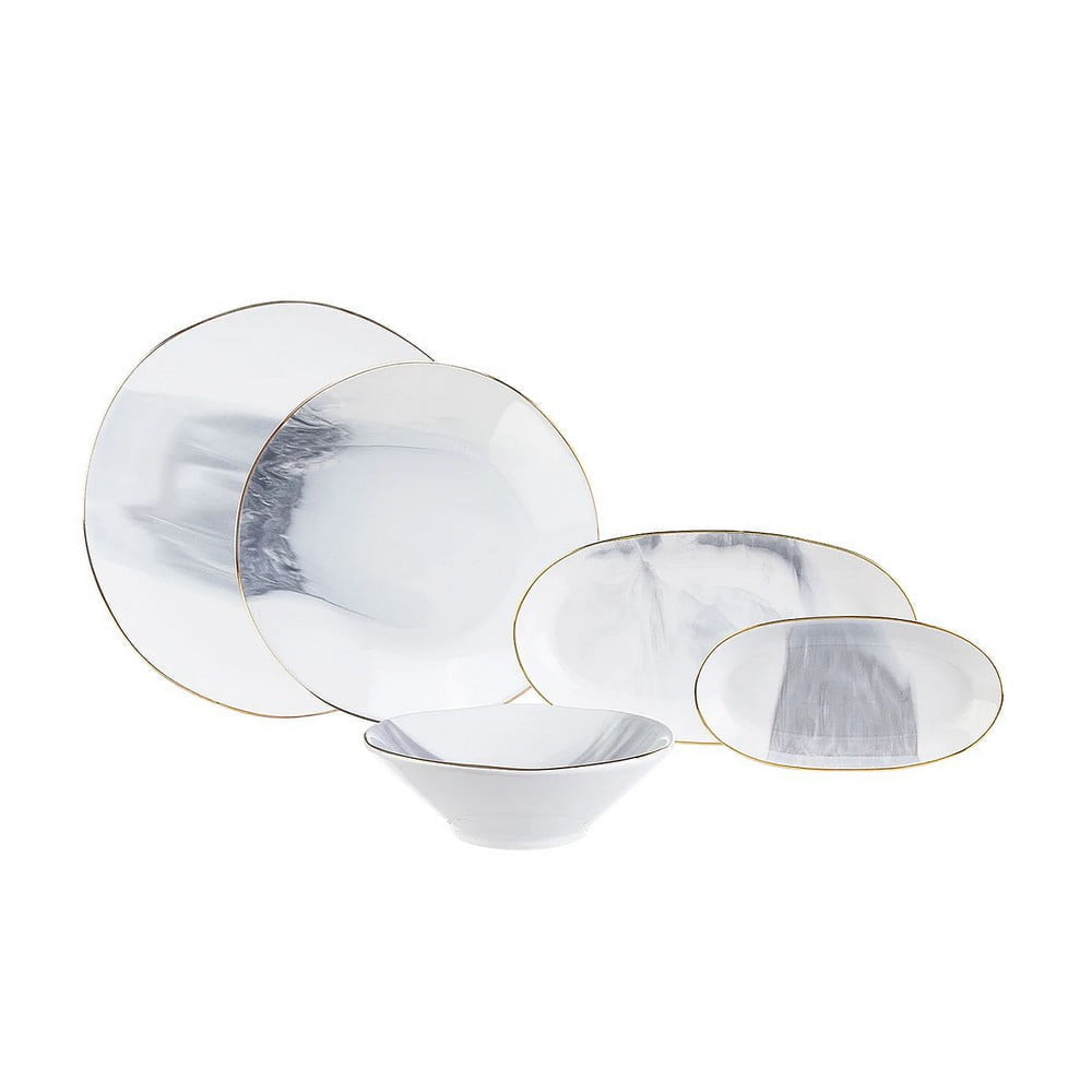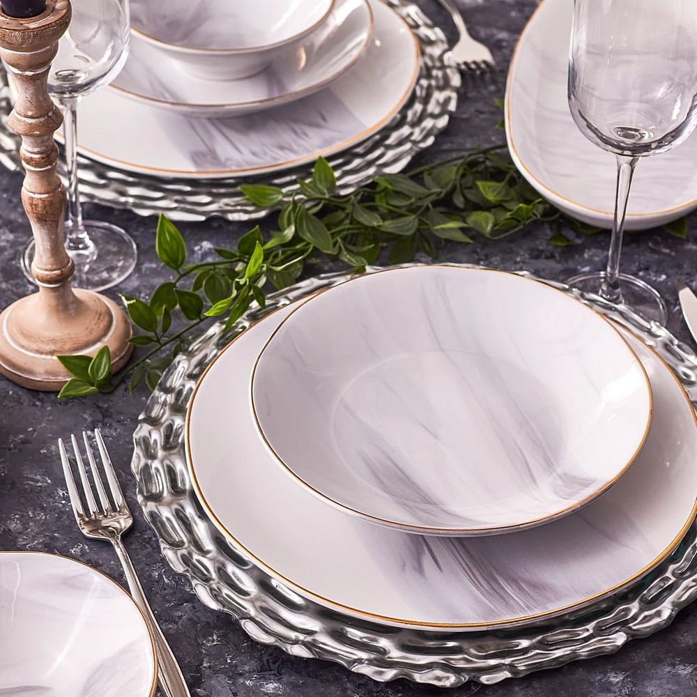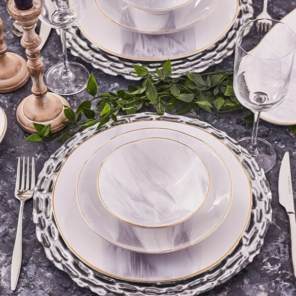 Stoneware gets its shape and color from white kaolin clay, its glassy appearance from quartz stone, and its durable structure from feldspar minerals. Stoneware, which has much higher durability than ceramics, is not affected by acid and is very durable against scratches. This uniquely beautiful 39-piece dinnerware set, which has a healthy structure as it does not contain lead, includes 12 serving plates, a dinner plate and a soup bowl, 2 small boat plates and 1 large boat plate. Add it to your cart now so you don't miss out on the model, which is among the most elegant dinner sets!