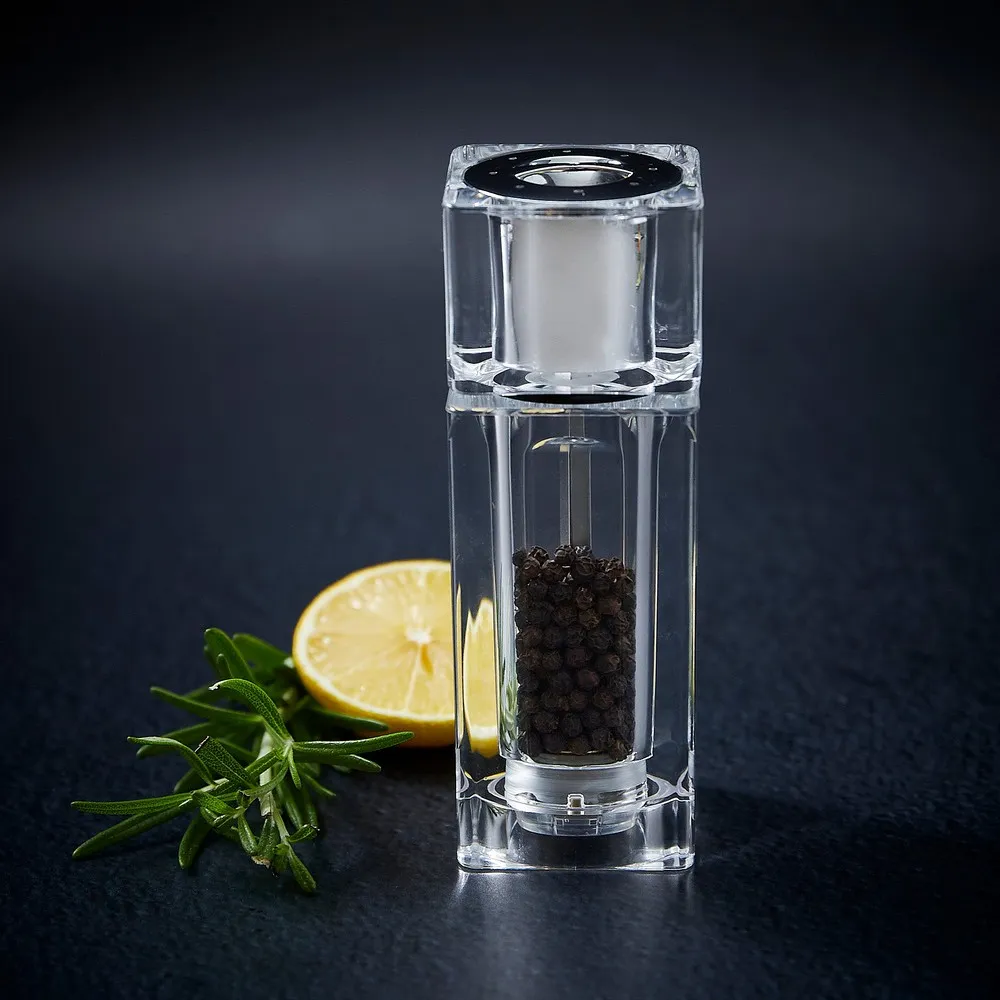 The Cube Combi-Mill combines salt and pepper storage and grinding in a sleek, compact design. Its unique shape and precision grind settings make it a stylish and practical choice. The easy-to-use twist mechanism allows for smooth operation, while the clear compartments let you monitor seasoning levels at a glance. Designed for convenience, this mill is perfect for those who love modern and minimalist kitchen accessories.