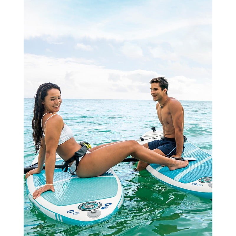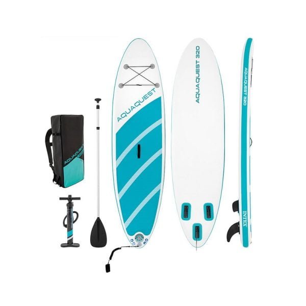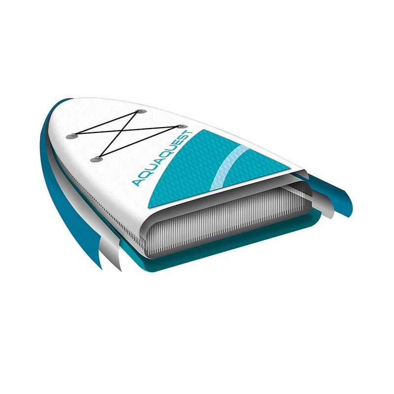 Whether you’re just starting out or have years of experience, the AquaQuest 320 combines performance with quality for all skill levels. The paddle board is crafted with a solid structure using drop stitch double wall fabric, yet lightweight and portable.