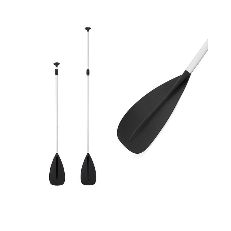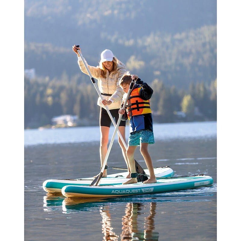 Constructed with dual-layer PVC side rails for extra durability, the ride is comfortable and stable even in choppy waters. Included with all the essentials to get you on the water ? a telescoping aluminum paddle, center-finned versatile design for maneuverability, dual action hand-pump for quick inflation and heavy duty backpack. Simply inflate and get ready for your aquatic adventure.