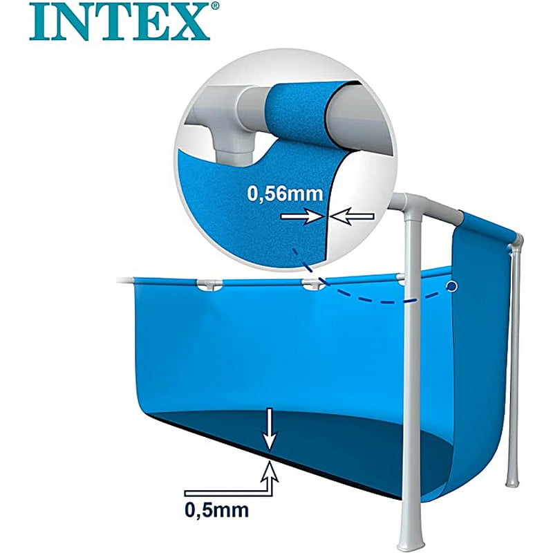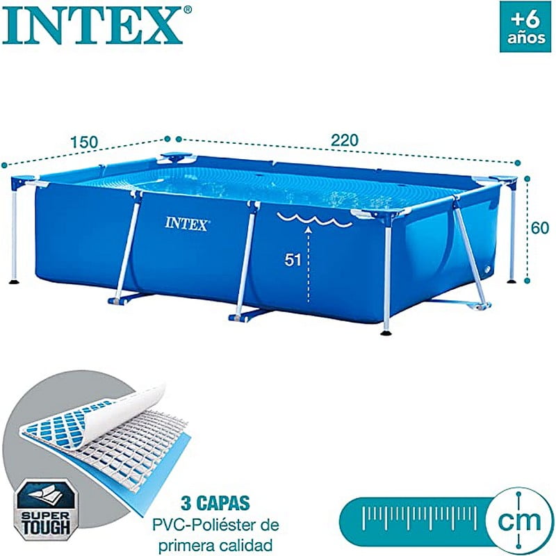 This 220 x 150 x 60 cm pool is a refreshing and relaxing backyard retreat for 5-6 people. It has a convenient drain plug that connects to any hose so that water can be drained away from your house and pool area. Relax, make a splash, and chill in this small above ground Intex Rectangular Frame Pool on any hot summer day. Escape the summer heat and keep cool with the Intex Rectangular Frame Pool.